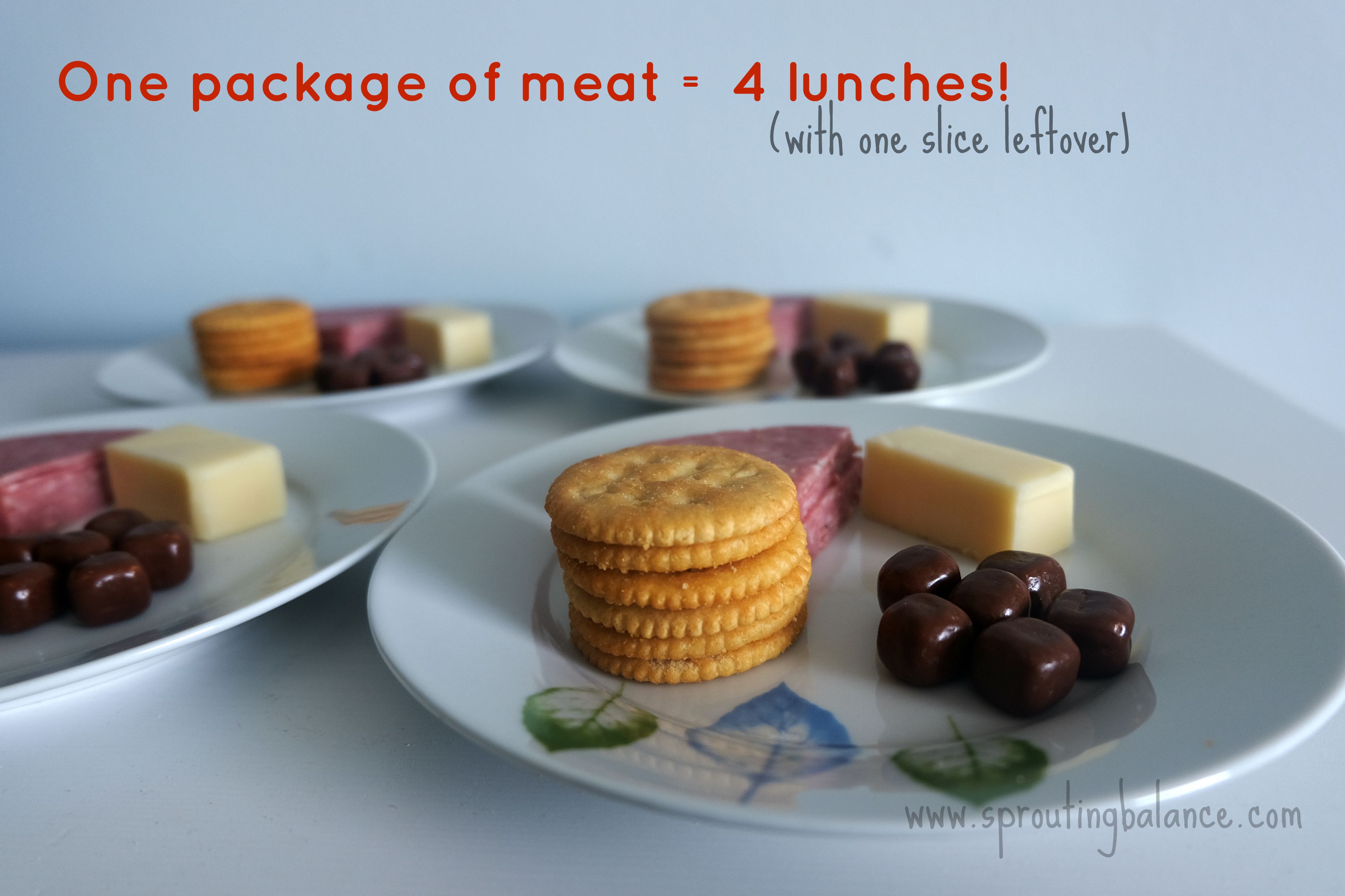 My home-prepared version cost me $1.67 for what you see on the plate. The Summer Sausage package I purchased had 4 Lunchmate size servings plus 1 slice leftover. This means I could have 4 lunches for $6.54.