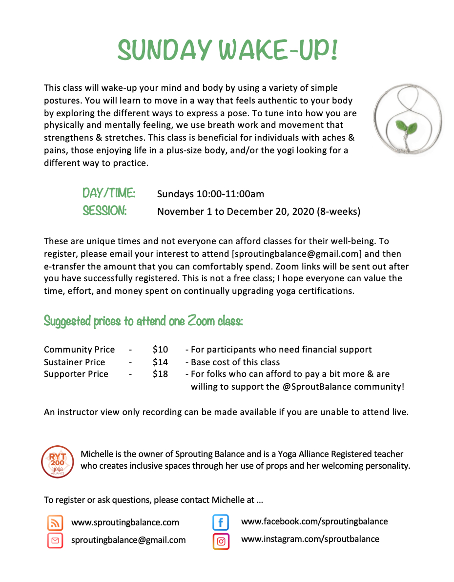 Sprouting Balance is offering Zoom classes so you can enjoy yoga in the comfort of your own home!
